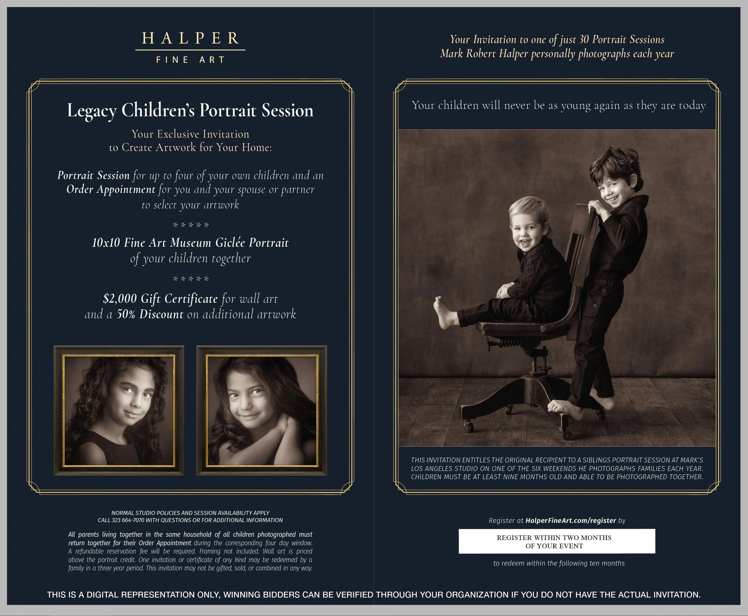 This exclusive invitation begins your journey toward an extraordinary portrait of your children by acclaimed artist Mark Robert Halper. With sessions with Mark only offered six weekends a year in his Los Angeles studio, it is a rare opportunity to create a work of art that will bring you joy for generations to come and remind your children of how much they are loved.